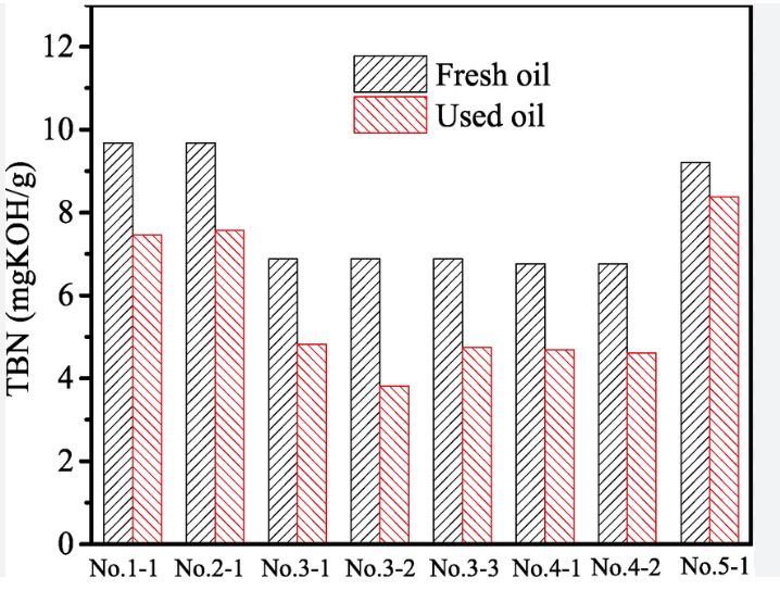 Nhìn chung, giá trị TBN cho dầu động cơ mới có thể dao động trong khoảng từ 6,0 – 13,0 mgKOH/g. Trong nhiều thập kỷ, giá trị này đã được sử dụng như một tiêu chuẩn công nghiệp để xác định thời điểm cần thay dầu động cơ. Trước đây, khi số bazơ bị cạn kiệt đến hoặc vượt quá giới hạn kết án được xác định trước theo chỉ định của phân tích dầu đã qua sử dụng, người ta thường kết luận rằng dầu nên được xả và thay thế. Nhưng bắt đầu từ năm 2006, những phát triển trong ngành công nghiệp hạng nặng sẽ dẫn đến những thay đổi trong tư duy thông thường trong lĩnh vực phân tích dầu động cơ đã qua sử dụng. Đầu tiên, mức lưu huỳnh trong nhiên liệu diesel đã giảm xuống chỉ còn 15 ppm đối với động cơ trên đường bộ và quá trình đốt cháy trở nên hiệu quả hơn, dẫn đến ít muội than xâm nhập vào dầu động cơ hơn và giảm axit cứng. Trước khi có sự thay đổi này, khi TBN giảm, chỉ số axit tổng (TAN) sẽ tăng và sau đó là sự gia tăng của kim loại ổ trục: chì và đồng, cho thấy ổ trục bị ăn mòn do axit. Tuy nhiên, ngày nay, khi TBN giảm, chúng ta không còn thấy sự gia tăng của TAN và kim loại mài mòn nữa.