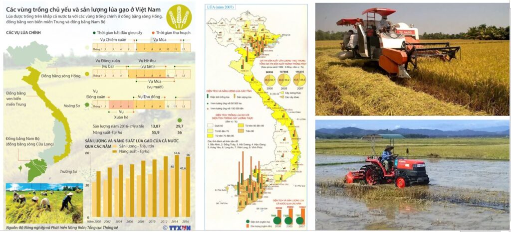 Lúa được trồng trên khắp cả nước ta với các vùng trồng chính ở đồng bằng sông Hồng, đồng bằng ven biển miền Trung và đồng bằng sông Cửu Long ( Nam Bộ).