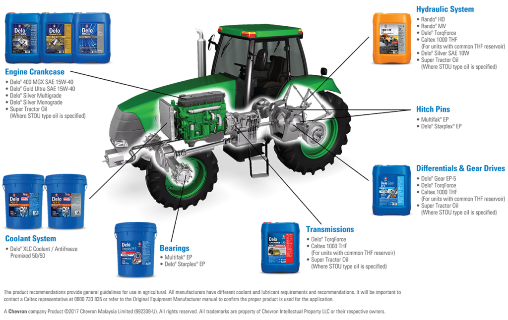 - Dầu máy kéo (UTTO): Chất bôi trơn đa dụng chuyên dụng được thiết kế để sử dụng cho động cơ, hộp số, hệ thống thủy lực và phanh ướt của máy kéo.