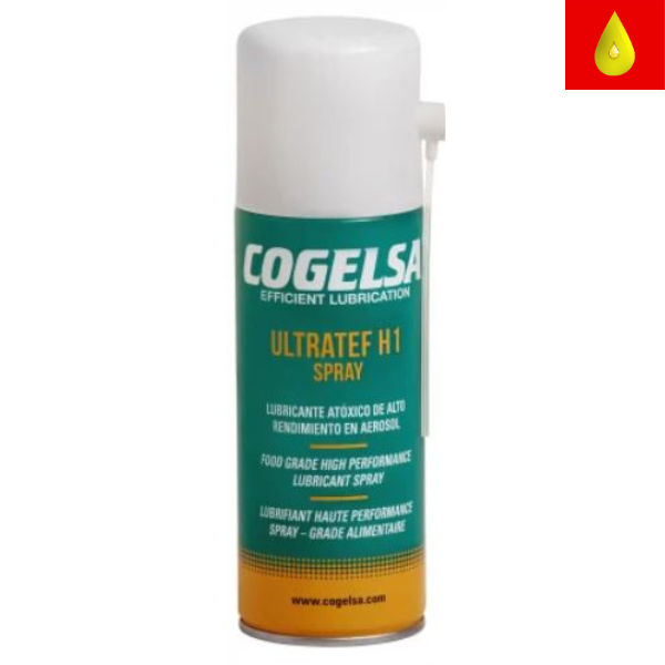 Dầu an toàn thực phẩm dạng xịt Cogelsa Ultratef H1 được pha chế từ hỗn hợp dầu trắng y tế, hydrocacbon tổng hợp và các phụ gia cải thiện tính năng, có chứa PTFE, dùng cho bôi trơn lâu dài trong điều kiện môi trường khắc nghiệt và an toàn khi tiếp xúc ngẫu nhiên với thực phẩm, đạt chứng nhận NSF H1.