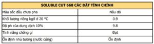 • Soluble Cut 668 có khả năng chống rỉ tốt, giúp giảm thiểu sự phát sinh rỉ sét trên vật liệu và thiết bị giữa các giai đoạn công nghệ.